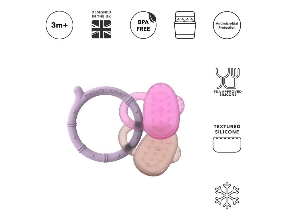 Vodou plněné kousátko ve tvaru usměvavé opičky přináší okamžitou úlevu při prořezávání zoubků. Stačí ho vložit do chladničky a jeho chladivý efekt pomůže uklidnit podrážděné dásně. Jemné masážní výstupky příjemně stimulují dásně, zatímco ergonomický tvar umožňuje děťátku snadné držení.