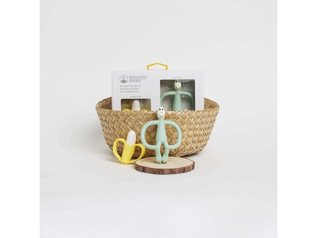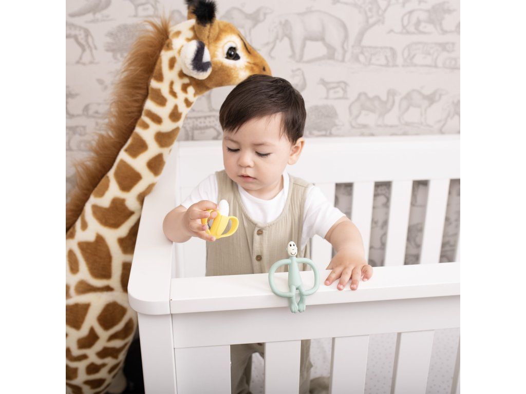 • Obsahuje kousátko opice v barvě mátově zelené a malé kousátko banán, použitelné i jako náhrada dudlíku