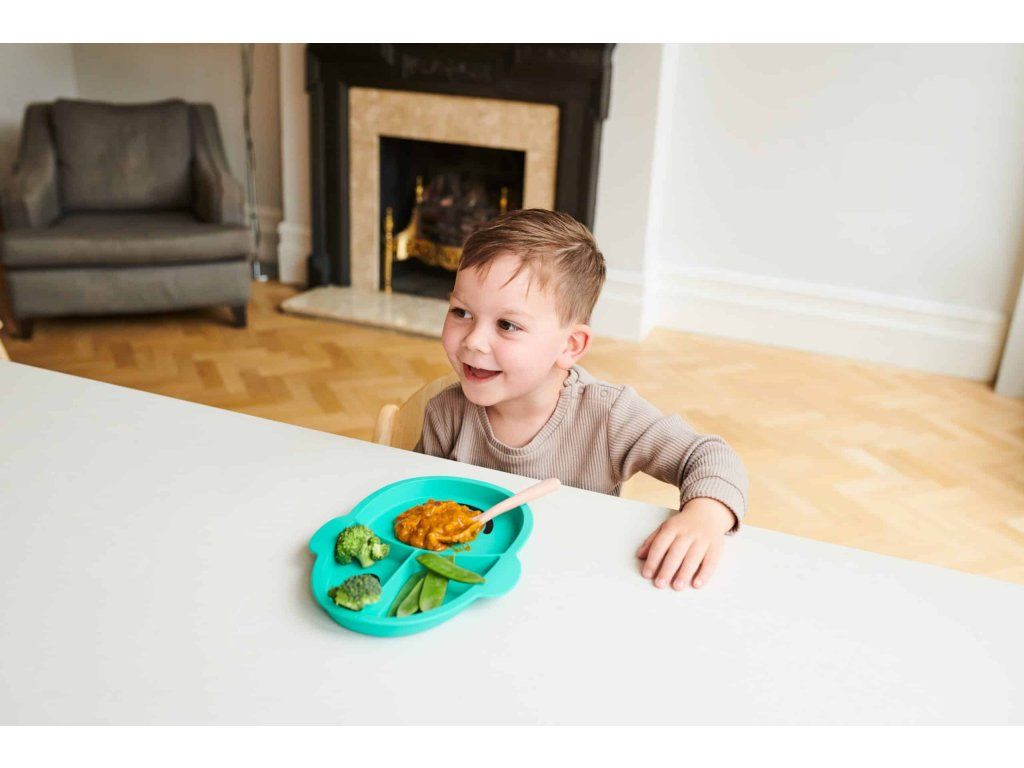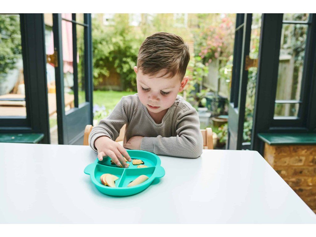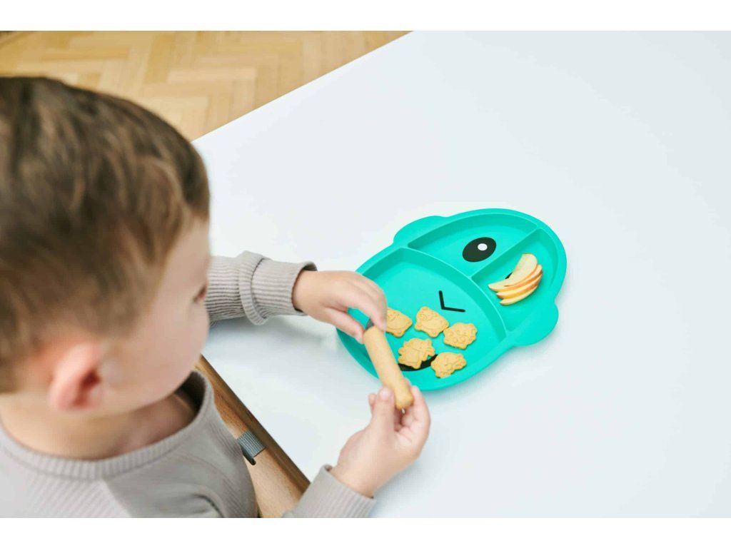 Talíř bez BPA a ftalátů je vhodný i do mikrovlnné trouby a myčky nádobí, díky čemuž se velmi snadno čistí. Je vyroben z nejkvalitnějšího silikonu LFGB, označovaného také jako „platinový silikon“.
