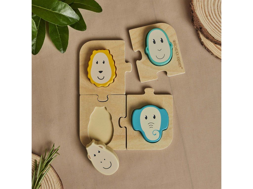 MATCHSTICK MONKEY DŘEVĚNÉ PUZZLE A PÁROVACÍ HRA 2V1 SE ZVÍŘÁTKY