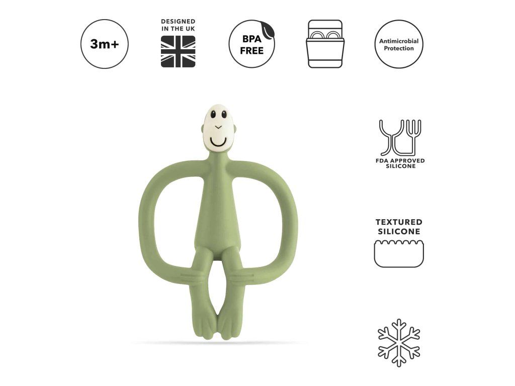 Matchstick Monkey pomáhá vám a vašemu dítěti při prořezávání zoubků. Prořezávání zoubků může být pro vaše dítě nepříjemné, ba dokonce bolestivé, ale hrbolky s texturou dostanou gely na prořezávání zubů ke zdroji bolesti, aby rychle poskytly úlevu a uklidnění. Ergonomicky navrženo pro dětské ručičky, vaše dítě si zamiluje žvýkání hravé opičky Matchstick Monkey. Jsou to kamarádi, které si může vaše dítě nechat doma, nebo si je může vzít s sebou kamkoli jde!