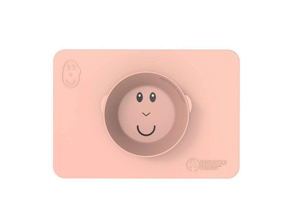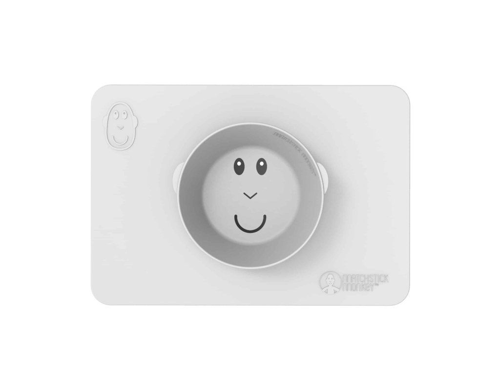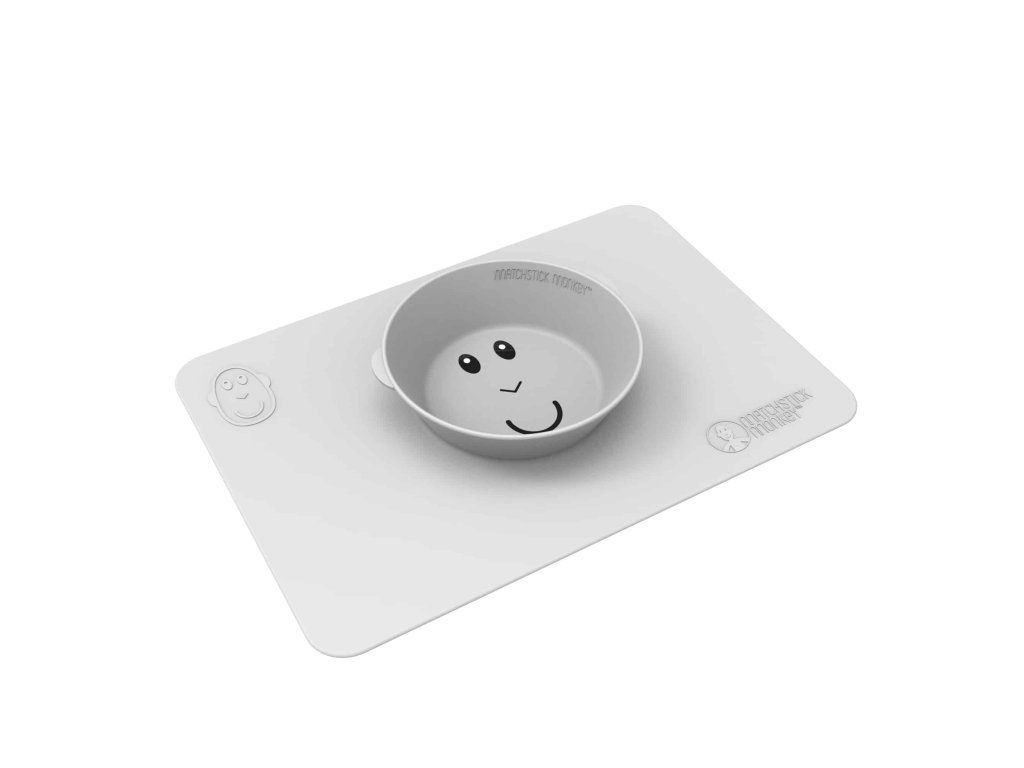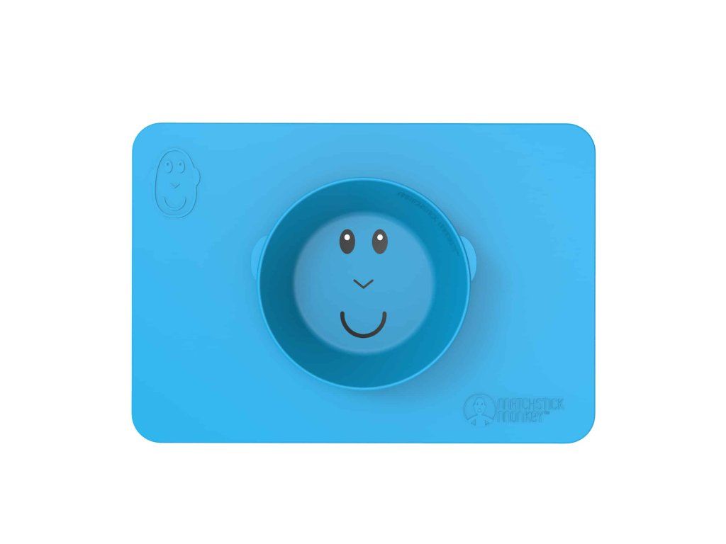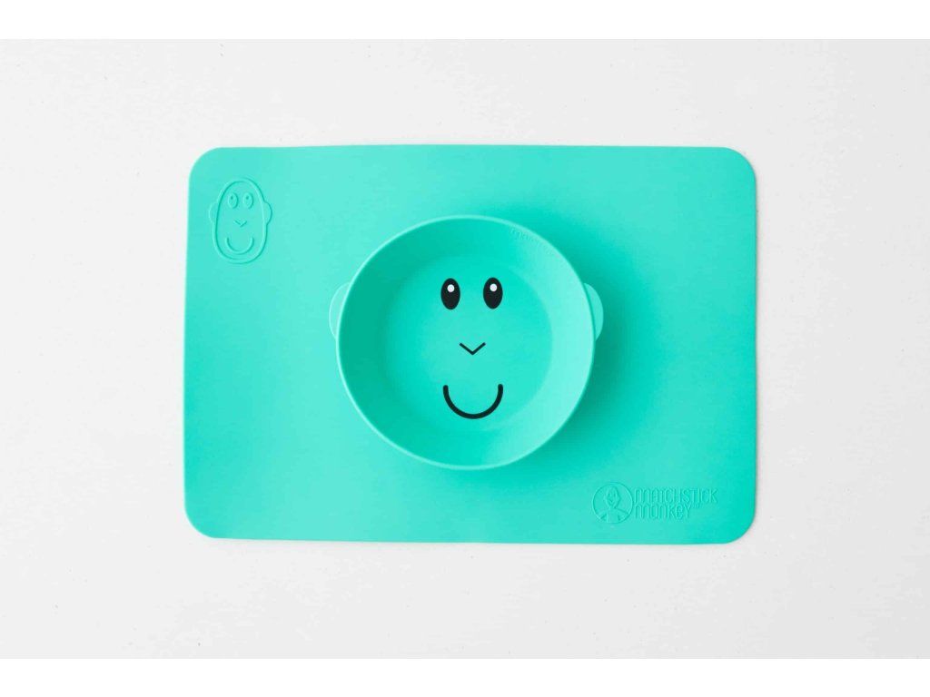 Protiskluzová podložka s integrovanou miskou Matchstick Monkey ve svěžích barvách a hravém designu je dokonalou pomůckou pro nepořádné jedlíky.