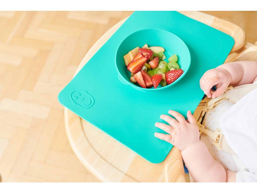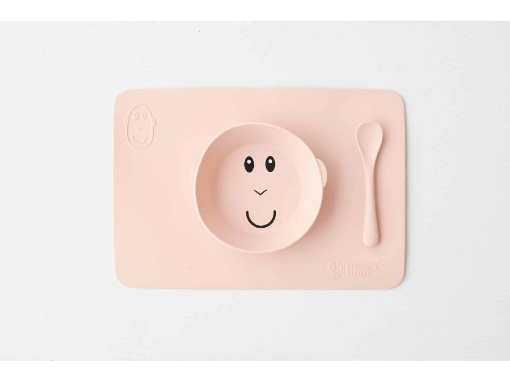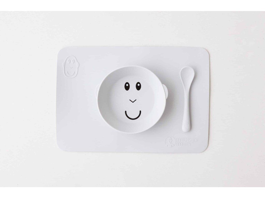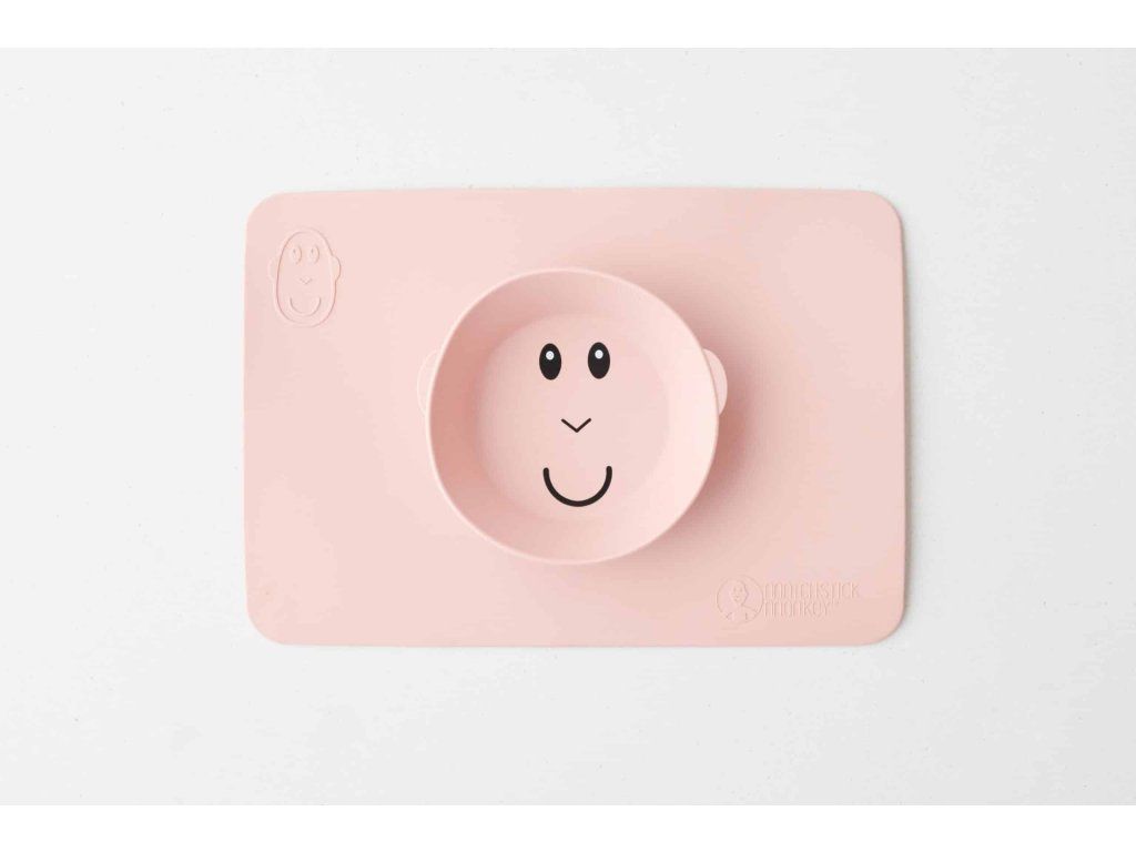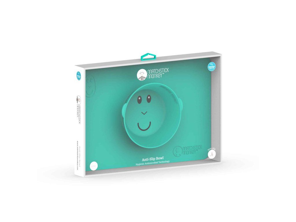 Protiskluzová podložka s integrovanou miskou Matchstick Monkey ve svěžích barvách a hravém designu je dokonalou pomůckou pro nepořádné jedlíky.