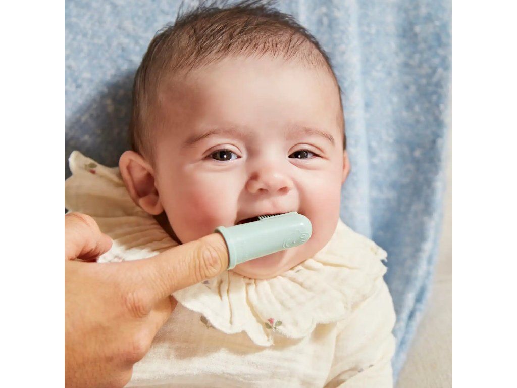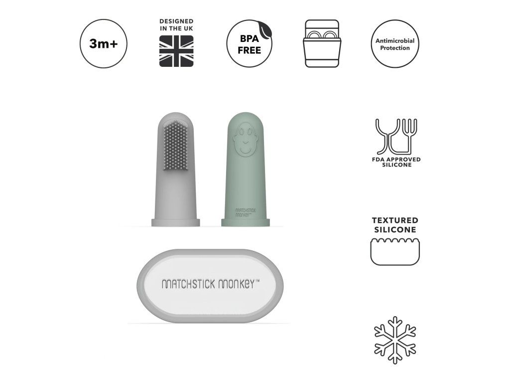 MATCHSTICK MONKEY SILIKONOVÉ ZUBNÍ KARTÁČKY NA PRST S POUZDREM MATCHSTICK MONKEY - GREY AND MINT GREEN