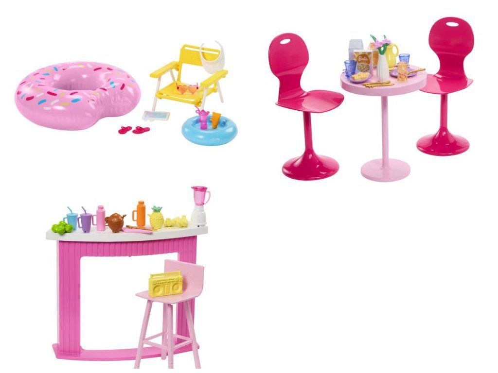 Sady doplňků Barbie® jsou se svými jasnými barvami a sladkým designem pastvou pro oči! Každé balení obsahuje 9 až 12 herních dílků a doplňků a umožňuje zahrát si na prima den strávený venku nebo například na přípravu chutných jídel. Děti si s těmito příběhovými sadami mohou vytvořit nespočetné množství různých příběhů. Každá sada se prodává samostatně, v závislosti na dostupnosti. Panenky nejsou součástí balení. Barvy a dekorace se mohou lišit.