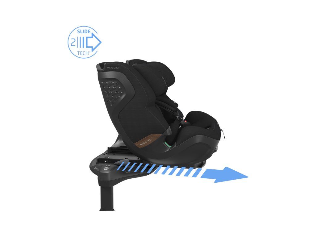 - pohodlné usazení dítěte díky samostatně prodávané základně Maxi-Cosi FamilyFix Slide Pro s technologií SlideTech®2: po otočení sedačky ji lze vysunout z auta až o 27 cm směrem k rodiči