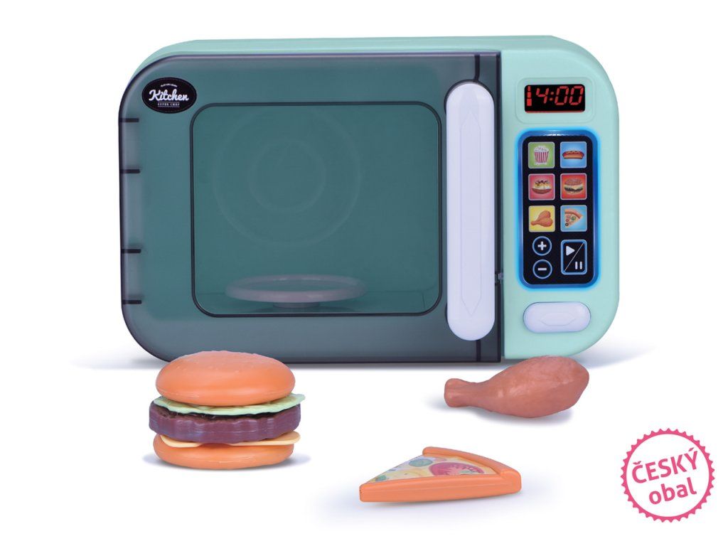 Nechce se ti vařit teplou večeři? Nevadí! Kup si nějakou hotovku a doma ohřej v mikrovlnce! Stiskni na displeji příslušný program podle typu jídla a za chvilku se můžeš najíst! Délku ohřívání si můžeš upravit pomocí tlačítek +/-. Talířek se v mikrovlnce otáčí. Provoz je doprovázen světelnými a zvukovými efekty. Rozměr mikrovlnky: 26 x 14 x 17 cm. Baterie 3xAA (součástí balení). Doporučený věk: 3-6 let