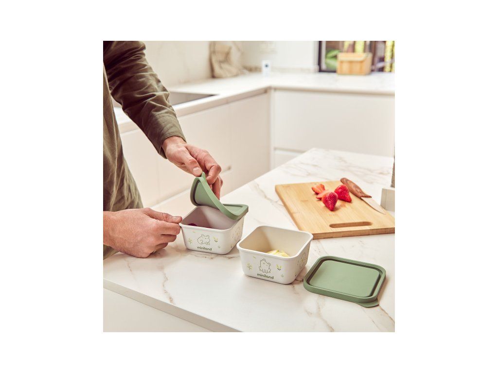 Misky s krásným potiskem jsou vyrobeny z materiálu 100% přírodního původu. Misky jsou ideální pro bezpečné uchování doma připravených dětských příkrmů. Hermetické silikonové víčko chrání obsah misky a pomáhá udržet příkrm déle čerstvý.