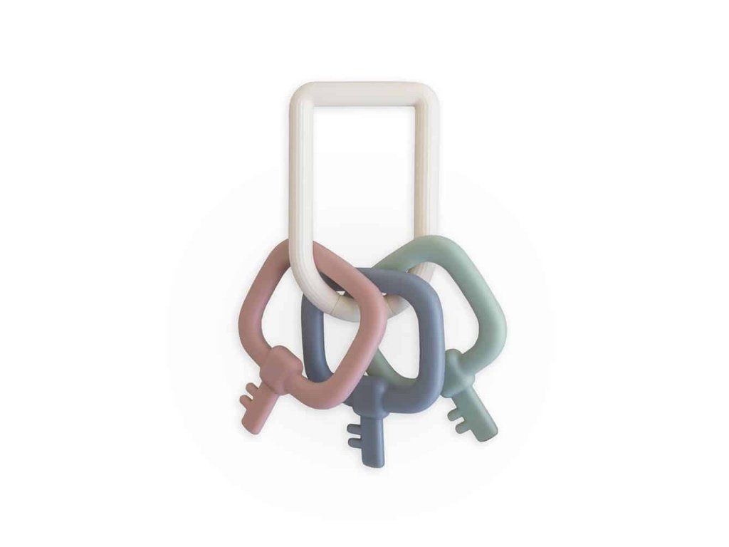 Hračka Mushie Klíčová podnítí dětskou kreativitu svým moderním pohledem na klasickou klíčovou hračku, která je dostupná v uklidňujících barvách.