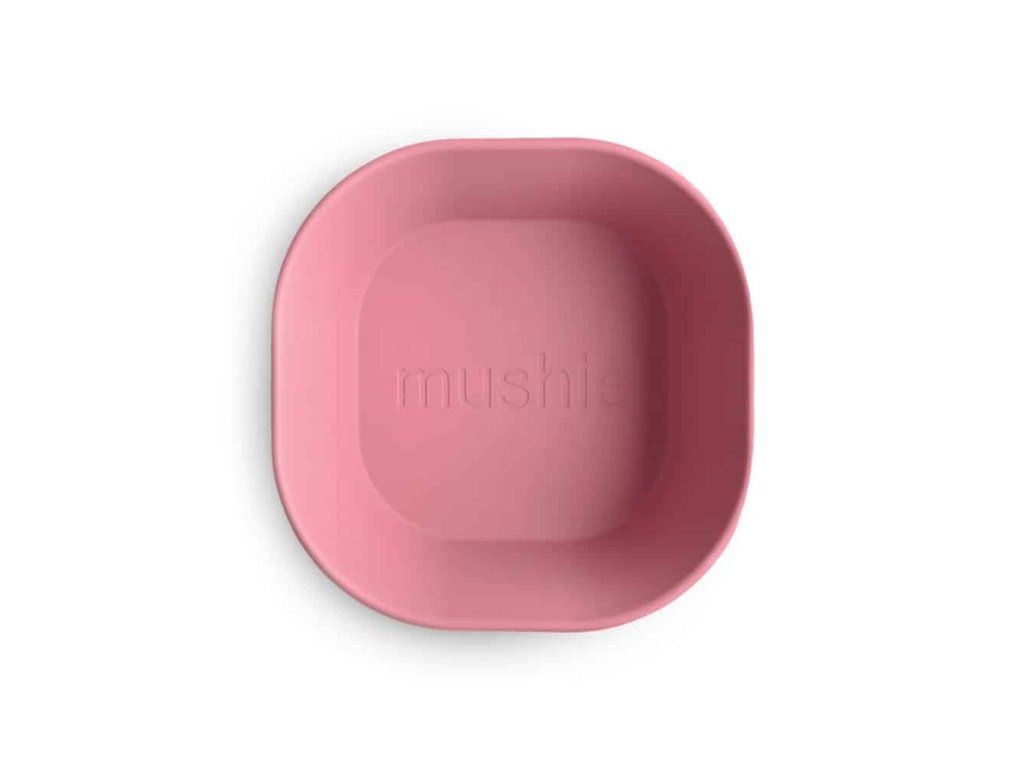 Seznamte svého drobečka s prvními pevnými jídly pomocí hranaté jídelní misky Mushie v odstínu pudrově růžová.