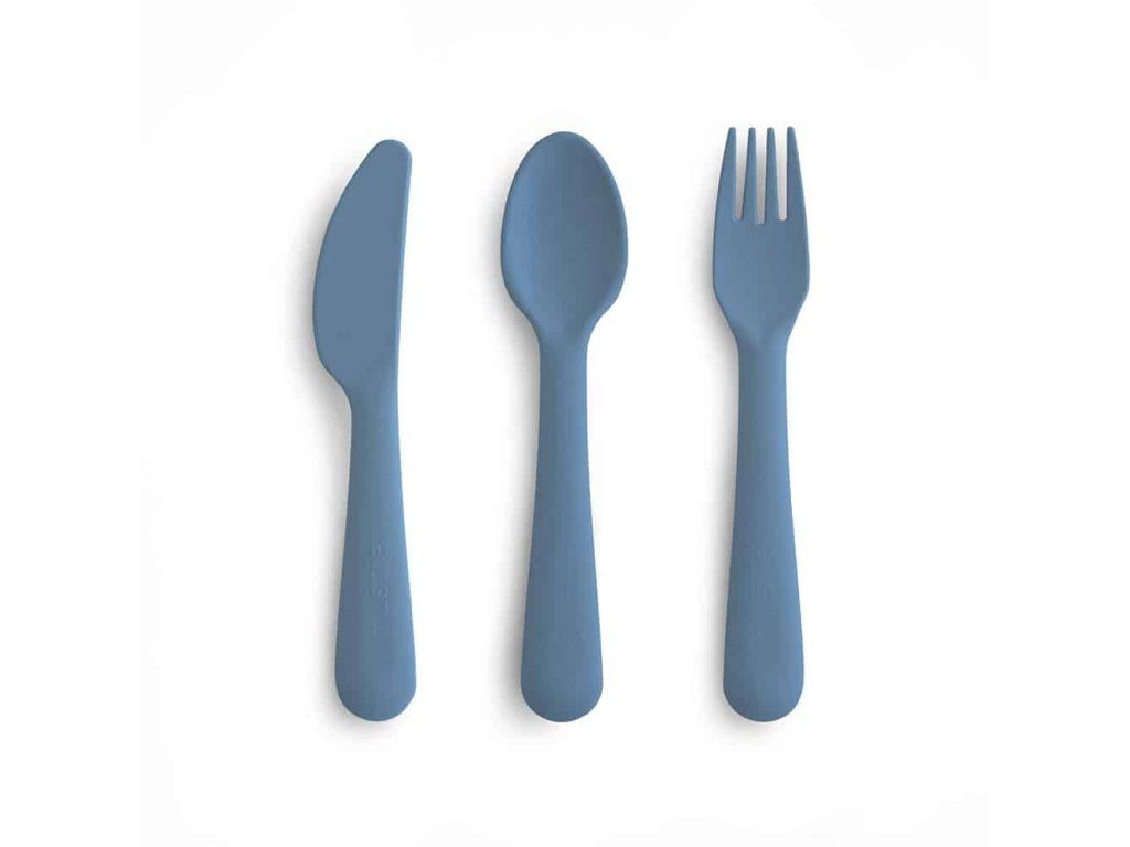 Tato sada z odolného polypropylenového plastu obsahuje vidličku, lžíci a nůž v jemném odstínu soumrakově modré a v čistém minimalistickém designu. Každý kus je ideální velikosti pro děti – snadno se drží a poskytuje pohodlné stolování.