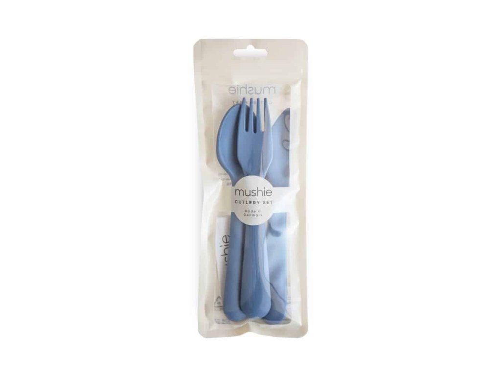 Stylová a praktická sada příborů od Mushie, navržená pro malé děti.