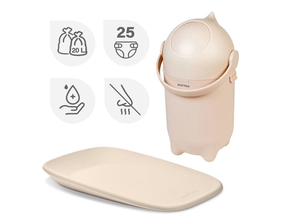 NATTOU Koš na pleny Dropy a přebalovací podložka Softy Beige 50x70 cm
