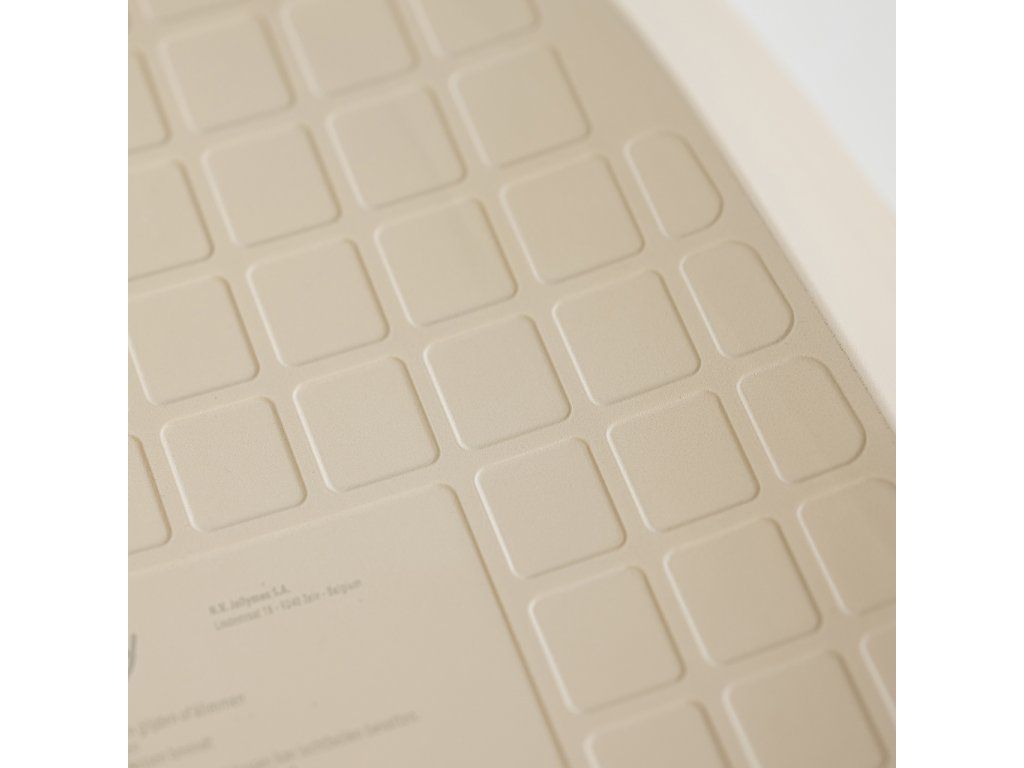 Podložka má ze spodní strany povrch připomínající strukturu včelího plástu. Váha dítěte stačí k tomu, aby se vzduch vytlačil a podložka se přisála na plochu, jakmile dítě zvednete, vakuum se uvolní a podložku je opět snadné přesunout.