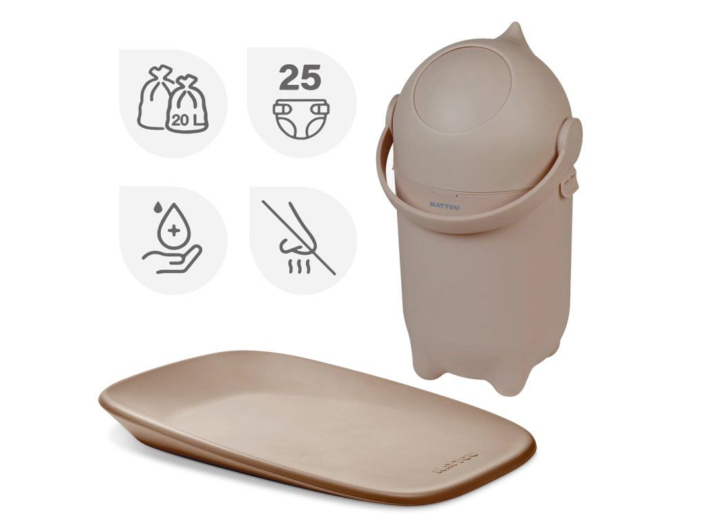 NATTOU Koš na pleny Dropy a přebalovací podložka Softy Taupe 50x70 cm