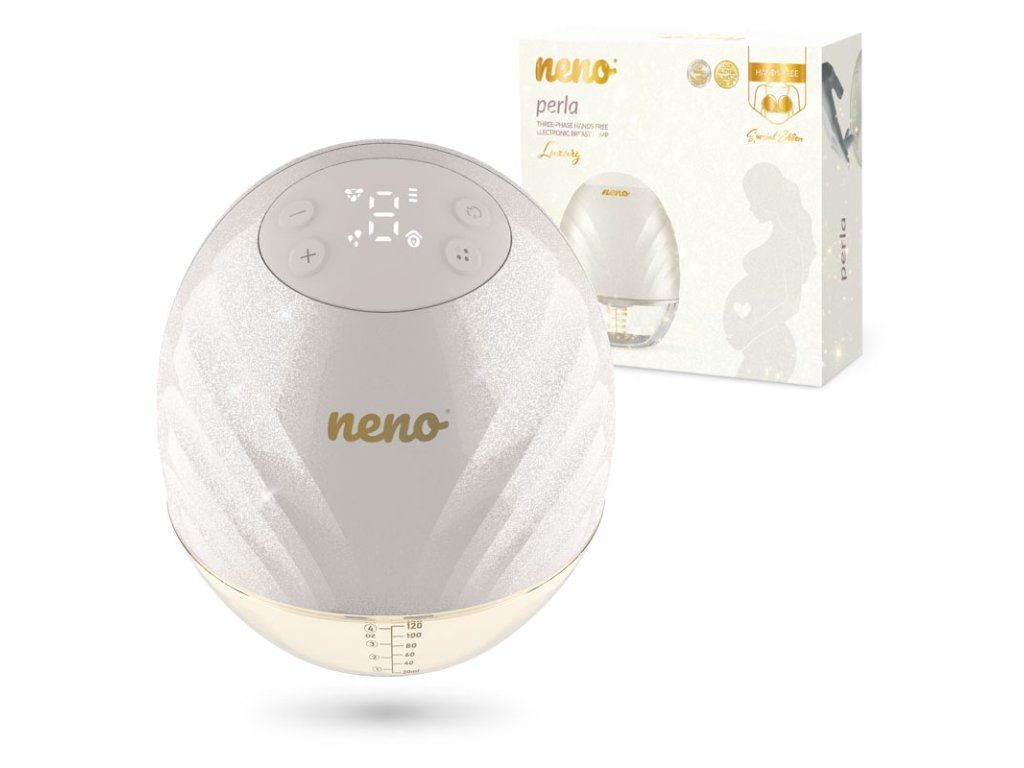 Neno Perla je inovativní bezdrátová handsfree odsávačka mateřského mléka, díky které toho zvládnete opravdu hodně. Její lehká a malá konstrukce se bez námahy vejde do košíku kojicí podprsenky a umožní Vám tak mít volné ruce. Odsávačka mléka funguje na základě tří fází s 9 úrovněmi nastavení. Má anatomický prsní nástavec ve tvaru prsu, který pod úhlem 105° obepíná prs a podporuje tok mléka. Součástí jsou dvě redukce pro zmenšení velikosti prsního nástavce v průměru 19 mm a 22 mm.