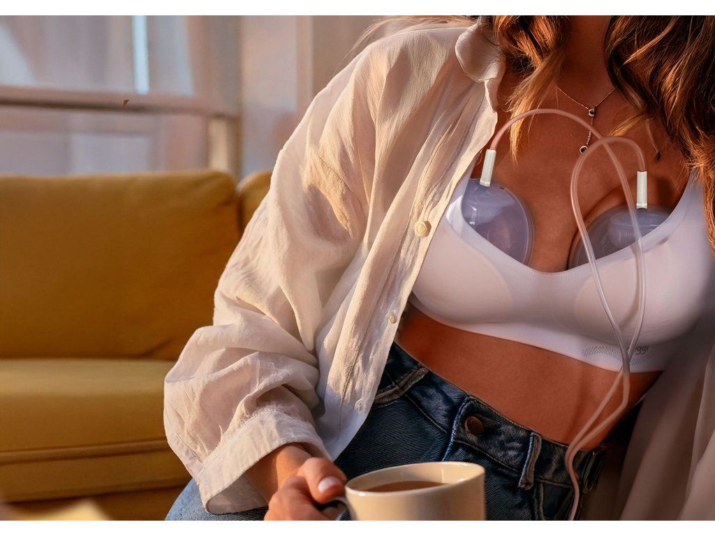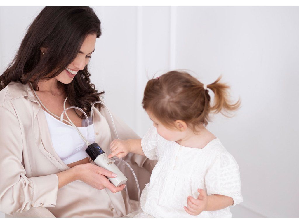 - Dvojitý způsob odsávání – současně odsává mléko z obou prsou, čímž šetří čas a zvyšuje efektivitu