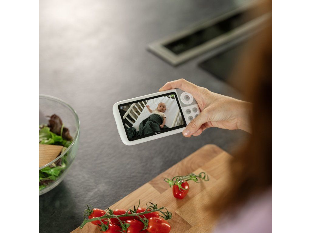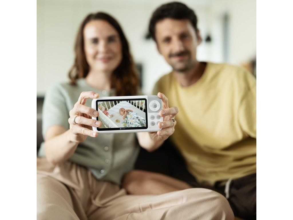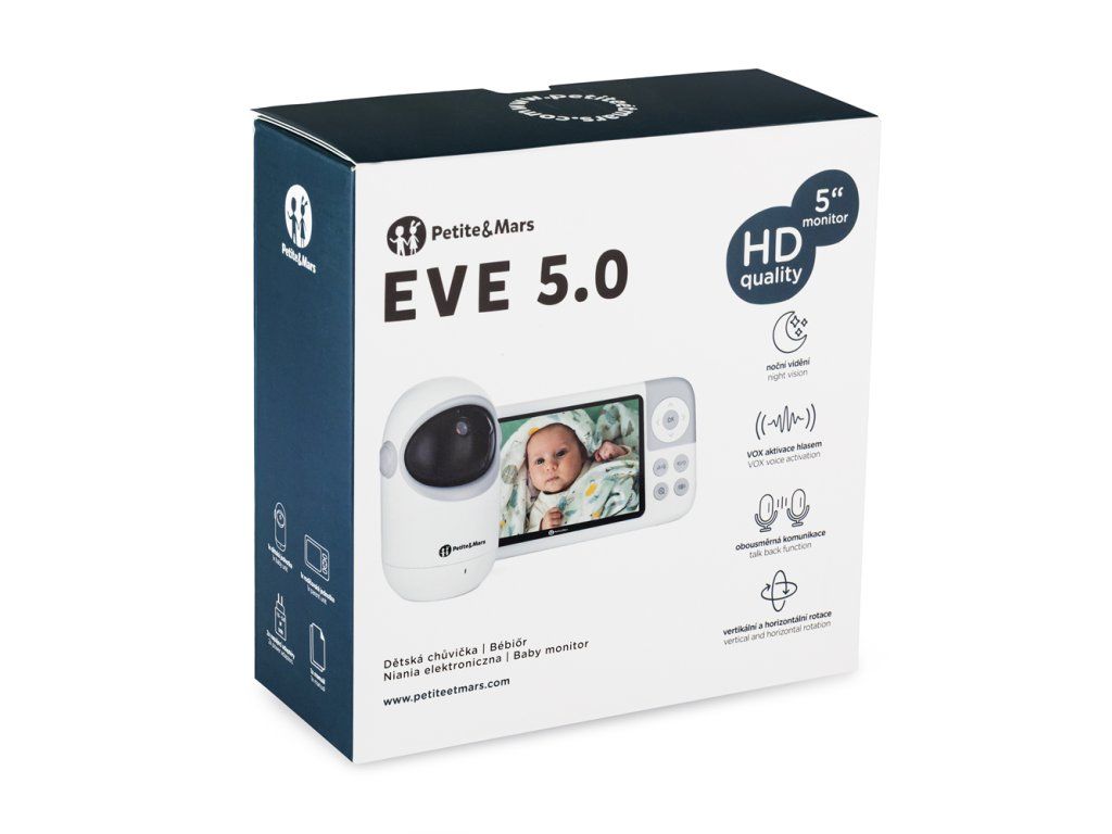 Kamera EVE 5.0 je navržena tak, abyste měli vždy dokonalý vizuální přehled o svém děťátku. Obraz se přenáší v HD rozlišení (720p) přímo na kvalitní 5" LCD displej rodičovské jednotky, díky čemuž vidíte každý detail – i v noci, i z dálky.