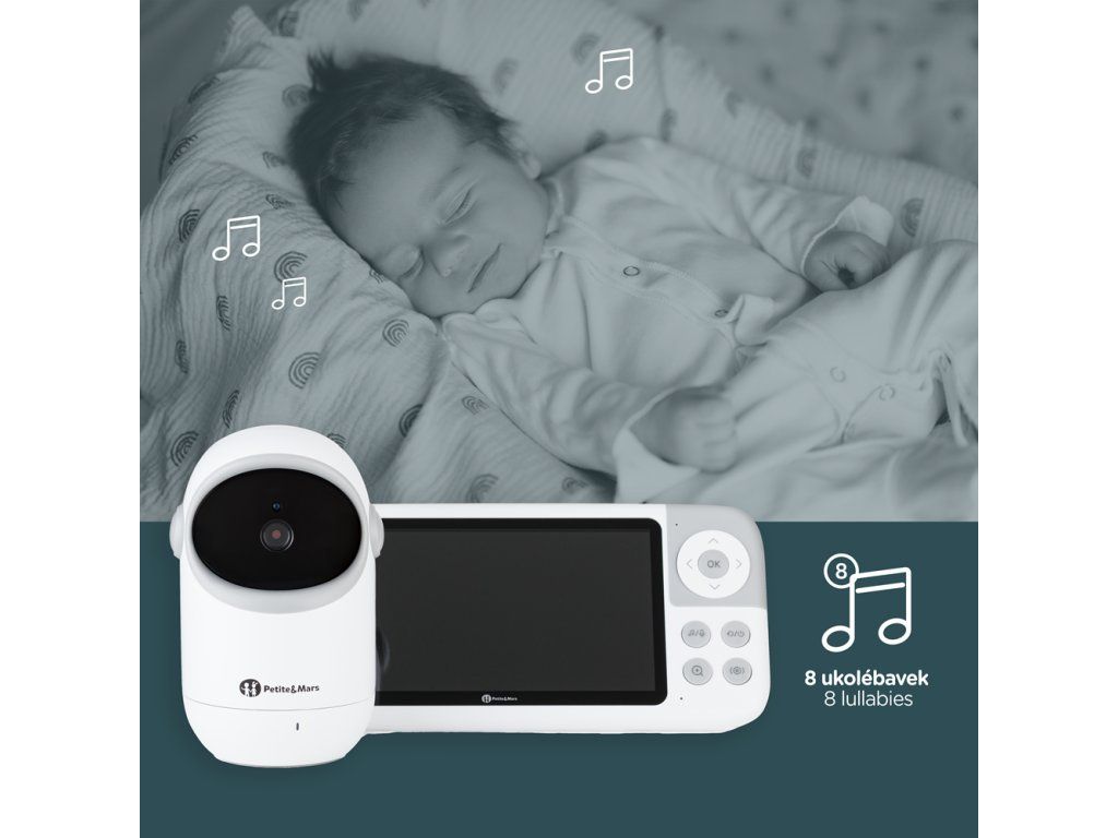 Kromě vašeho hlasu může vaše dítko uklidnit i 8 přednastavených ukolébavek, které můžete jednoduše spustit přímo z rodičovské jednotky. Jemné melodie vytvářejí příjemnou a klidnou atmosféru v pokojíčku – ideální při usínání nebo během nočního probouzení.