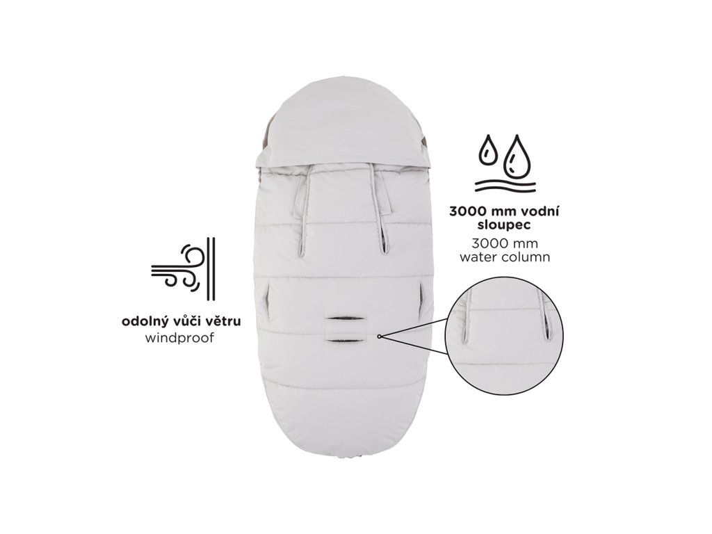 - Regulace teploty díky zipům, které jsou po stranách celého fusaku (lze odepnout celá horní část a spodní část fusaku lze použít jako samostatnou vložku)
