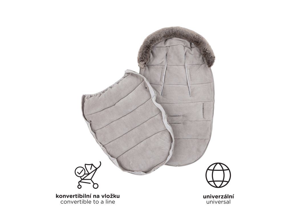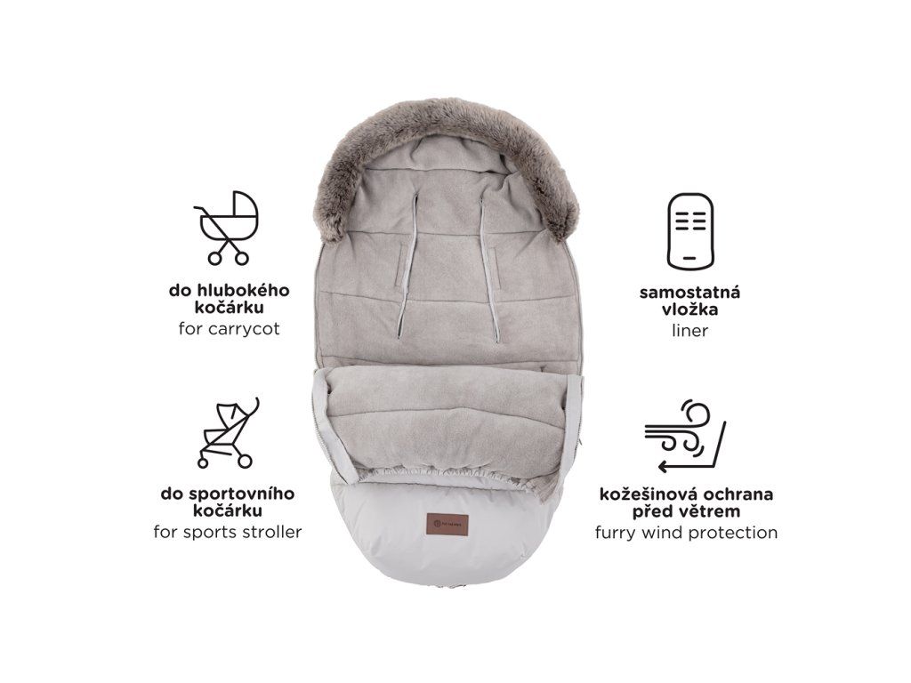 - Kožíšek se na fusak přichytává pomocí knoflíků a je možné velmi jednoduše ho odepnout a fusak vyprat při teplotě 30°C.