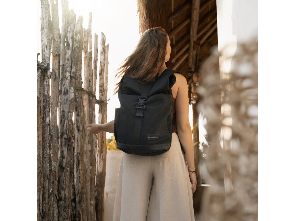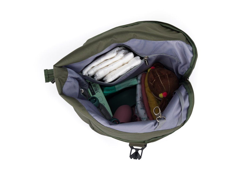 Tento pohodlný a organizačně promyšlený batoh je vyroben z kvalitních materiálů odolných vůči vlhkosti. Má boční popruhy pro připevnění ke kočárku a hlavní prostor se zapíná na zip, který prochází přes vršek a bok batohu. Díky tomu se batoh otevírá dokořán a vy si můžete důkladně prohlédnout obsah a pohodlně sáhnout po předmětu, dokonce i hluboko ukrytém. Kromě toho má horní část batohu rolovací zapínání s magnetickou přezkou, které kombinuje výhody tradičních uzávěrů s moderní magnetickou technologií. Přezka patentovaná Fidlockem funguje na principu přitahování magnetů, díky čemuž je její ovládání mimořádně intuitivní a rychlé. Otevírá se jednoduše potažením za přezku z nerezové oceli. Jednoduché a bezpečné řešení umožňuje rychlý přístup k obsahu batohu bez nutnosti síly. Chcete-li přezku zapnout, jednoduše spojte dvě části k sobě. Silné magnety automaticky zapadnou do spony a zajistí pevné a bezpečné zapínání.