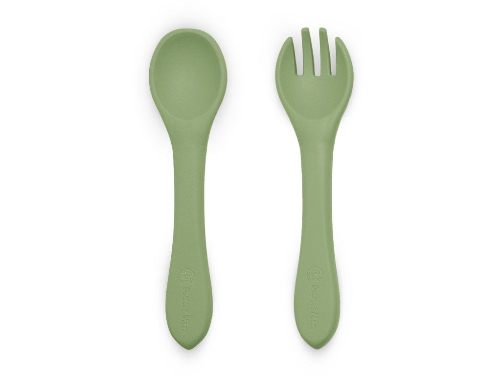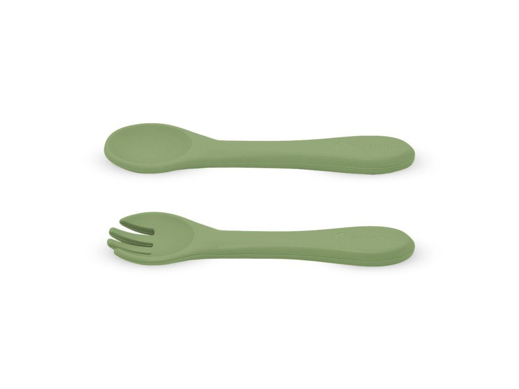 Souprava sestávající z vidličky a lžičky je celá vyrobena z potravinářského silikonu bez obsahu BPA. Díky tomu může vaše dítě jíst příborem teplá i studená jídla. Díky pružnému silikonu je příbor ideální pro citlivé dásně malého dítěte. Příbor je vhodný pro děti od 6 měsíců, které se seznamují s pestrou stravou, a pro ty, které se již úspěšně učí jíst samy. Zaoblené tvary a malé rozměry usnadňují dítěti jejich uchopení a tím i jedení.