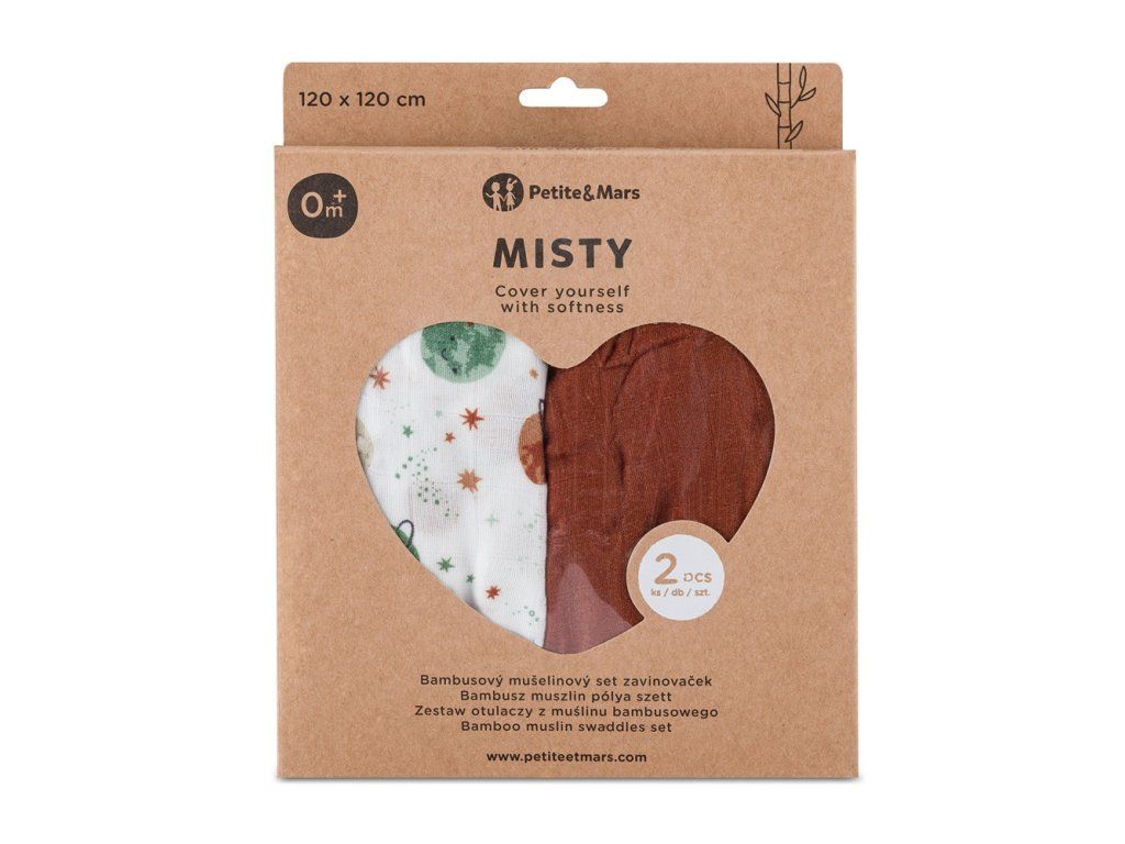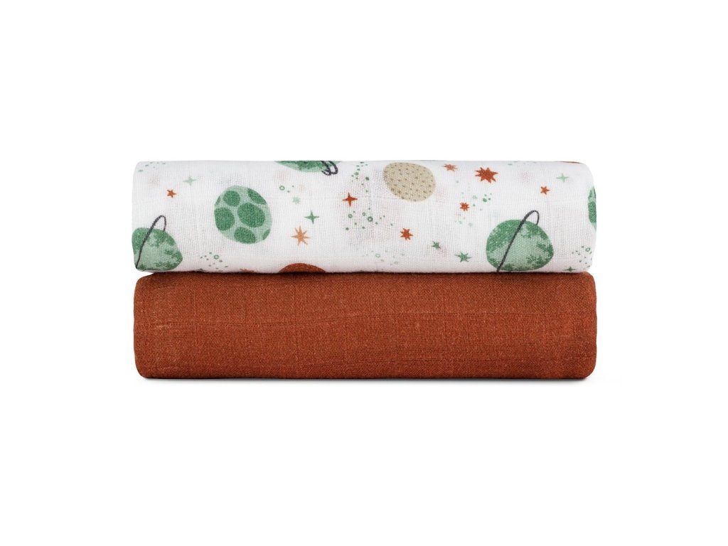 PETITE&MARS Přikrývka bambusová mušelínová 2ks Misty Celestial Planets 120 x 120 cm