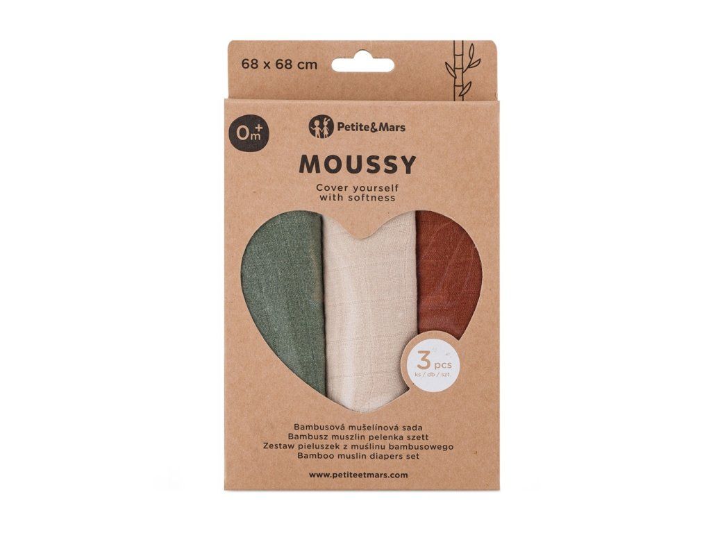 PETITE & MARS Sada plen bambusová mušelínová 3ks Moussy Earth Tones 68 x 68 cm