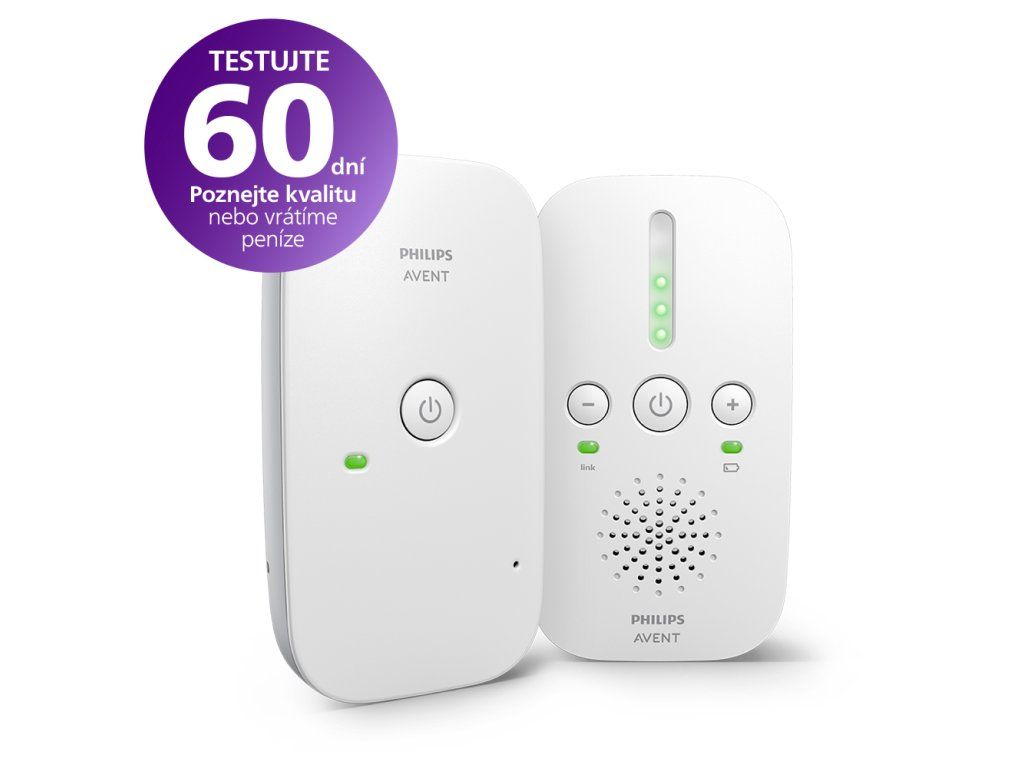 Digitální elektronická chůvička AVENT SCD502 s kvalitním jednosměrným přenosem zvuku bez přeslechů.