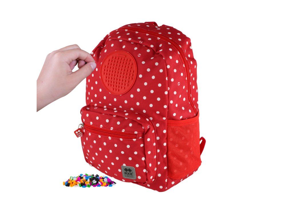PIXIE CREW dětský batůžek, červená látka s bílými puntíky, malý panel