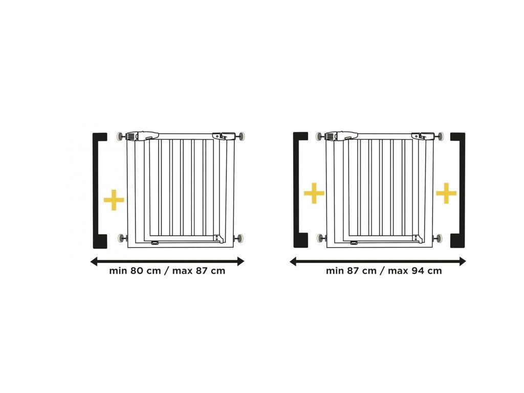 Rozšíření zábrany Safety 1st Simply Close Metal & Wood umožňuje zábranu rozšířit o 7 cm, abyste ji přizpůsobili většímu otvoru.