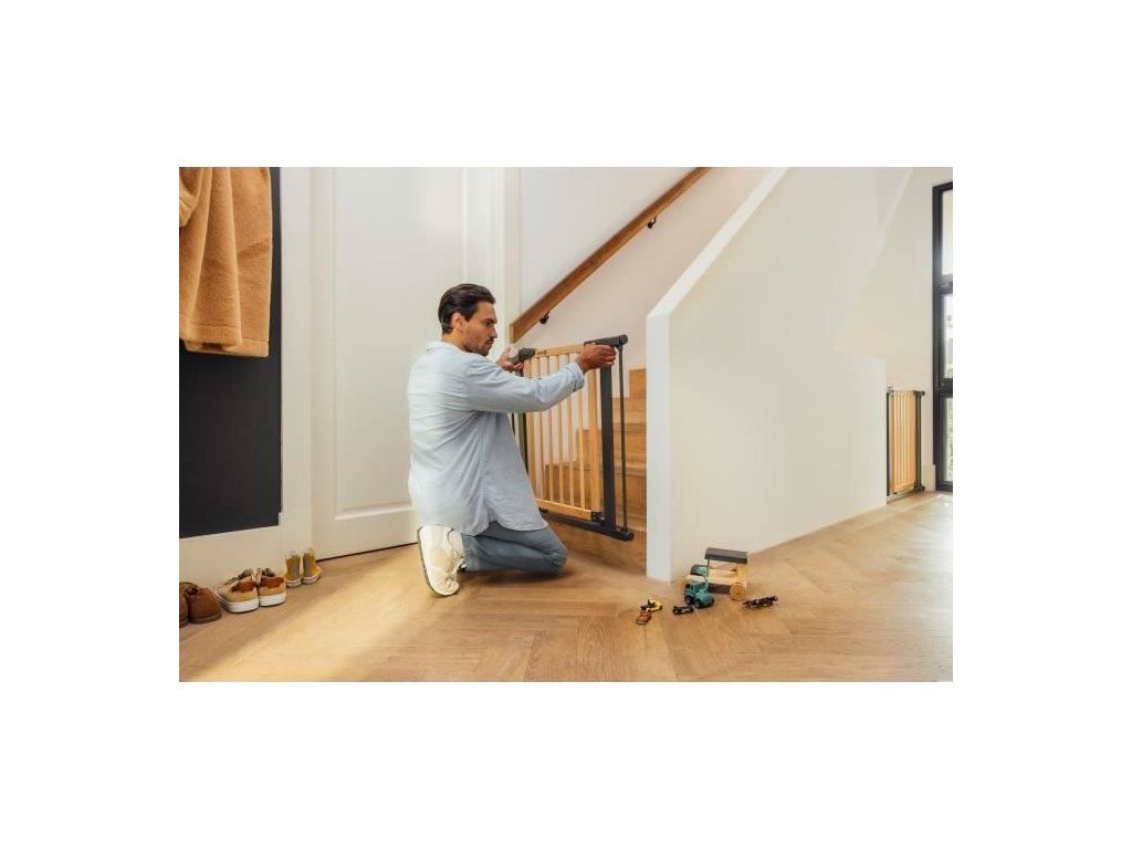 Zábranu připevníte bez nutnosti vrtání nebo šroubování do stěny či dveřního rámu.