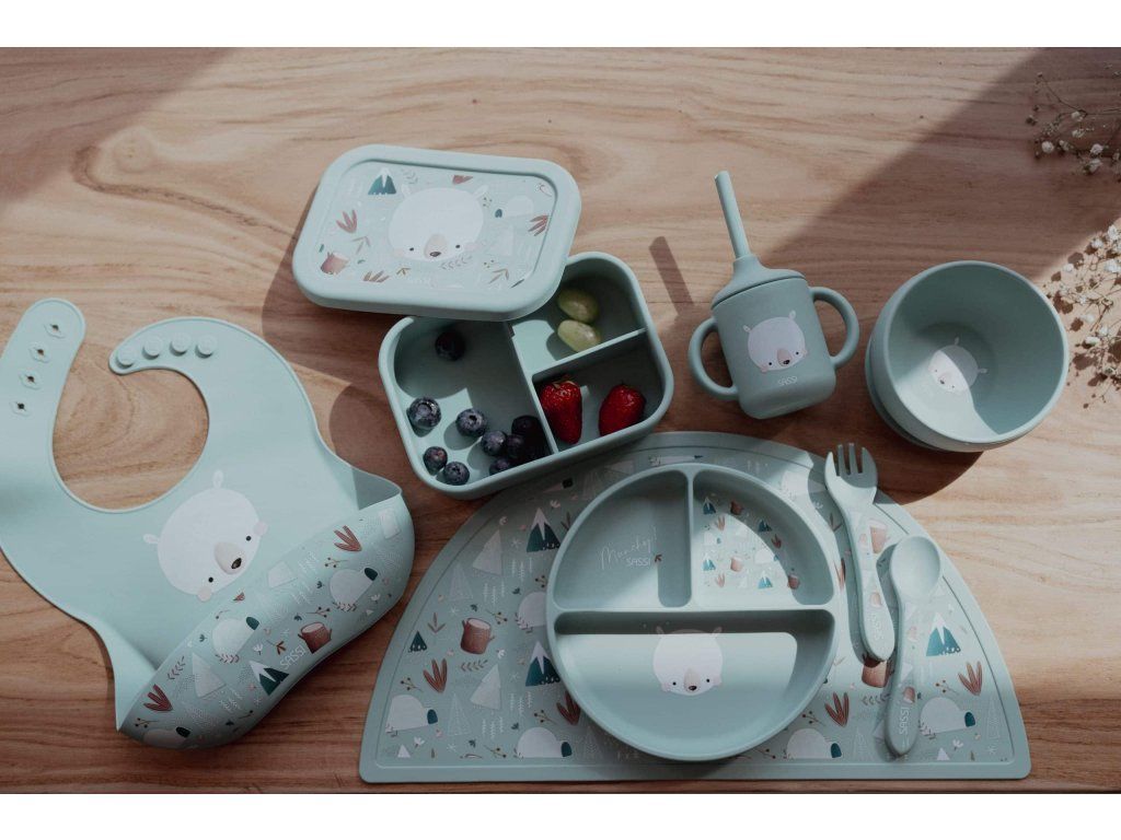 Vyrobeno ze 100 % potravinářského silikonu. Jídelní soupravy SASSI neobsahují škodlivé chemikálie jako BPA, PVC a ftaláty, čímž zaručují, že jídlo vašeho děťátka bude podáváno v co nejčistším a nejbezpečnějším prostředí. Měkká a hladká struktura silikonu dělá každý kousek příjemným na dotek, zatímco pružnost materiálu zajišťuje odolnost vůči nevyhnutelným nárazům a pádům, které provázejí dětské stolování. Naše silikonové výrobky splňují přísné bezpečnostní normy EN14372.