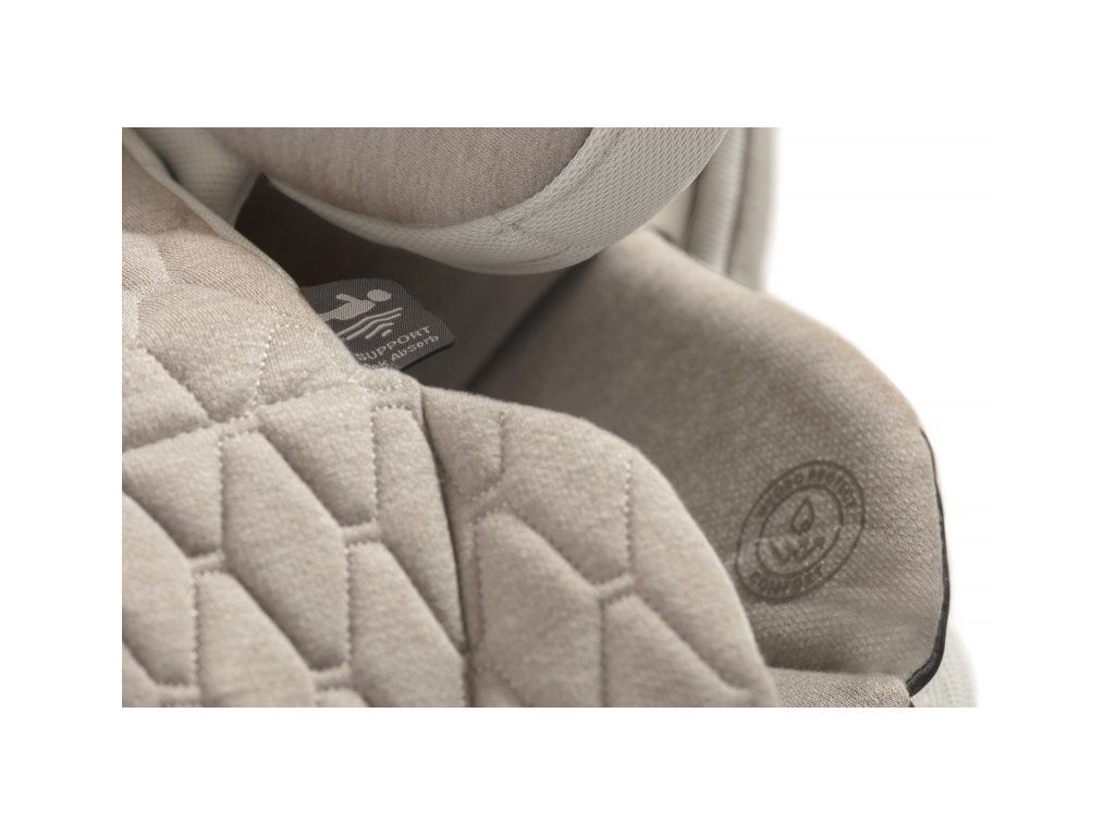 Nastavitelná nepropustná vložka pro novorozence HydroProtect poskytuje pohodlí a bezpečí dítěti od narození. Osm poloh opěrky hlavy umožňuje přizpůsobit autosedačku výšce rostoucího dítěte. Tři polohy náklonu nabízí pohodlí při spánku i při pozorování okolí z okna auta. 5bodové bezpečnostní pásy s inovativním systémem EasyFit maximálně usnadňují manipulaci s dítětem. Od výšky 100 cm (cca od 4 let) se dítě v autosedačce poutá bezpečnostními pásy vozidla. Pětibodové pásy se v tomto věku dítěte snadno skryjí do vnitřku autosedačky.Pro maximální pohodlí dítěte je autosedačka potažena kombinací měkké, prodyšné bambusové tkaniny a textilie vyráběné s ohledem na udržitelnost životního prostředí z recyklovaných PET lahví.