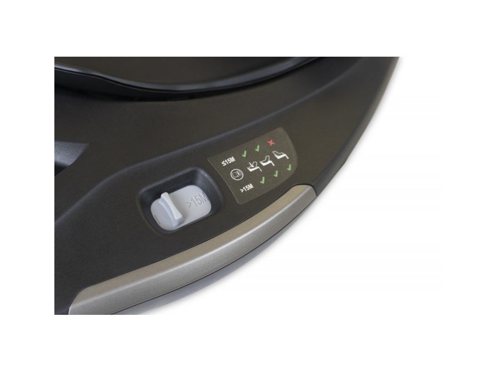- Základna umožňuje přechod mezi směrováním autosedačky proti a po směru jízdy podle věku dítěte.