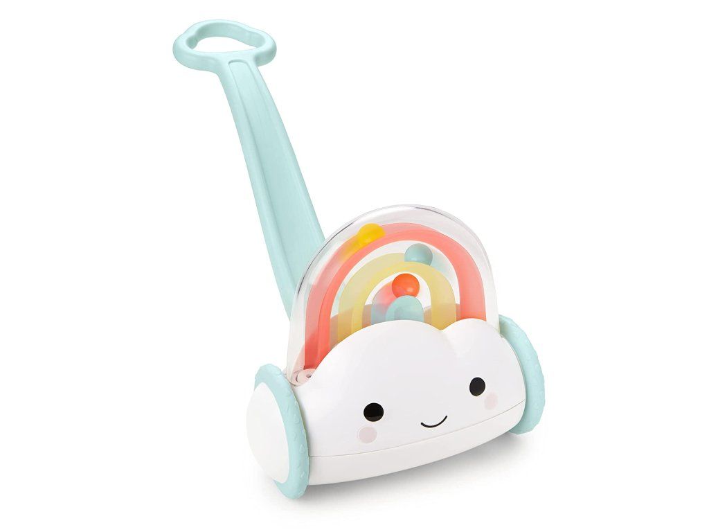 Klasická tlačná hračka s veselým designem obláčku a duhy s korálky. Dětem zajistí veselou a zábavnou oporu při prvních dobrodružných krůčcích. Duha s barevnými kuličkami odmění dítě za každý krok zábavnými praskavými zvuky. Skvělý způsob, jak si při hře vybudovat jistotu při chůzi, hrubou motoriku, rovnováhu a další dovednosti.
