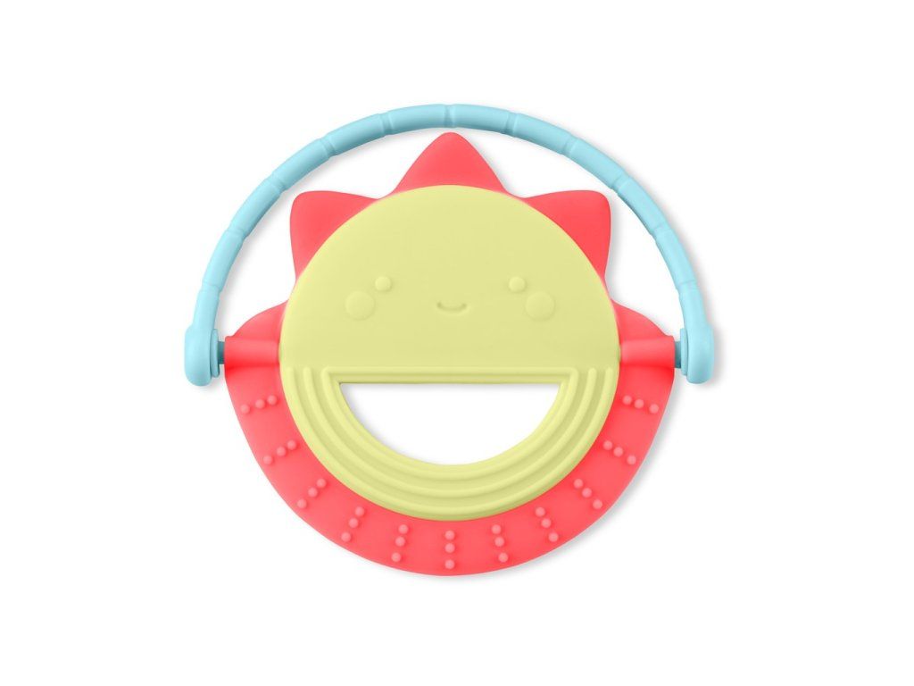 Ahoj, sluníčko! Rozkošná kousátko, které pomůže při prořezávání prvních zoubků. Měkký silikonový materiál s texturami, které jsou vhodné pro kousání, zároveň miminko i zabaví. Snadno uchopitelný tvar obsahuje i pohyblivý kroužek, který mohou malé ručičky objevovat.