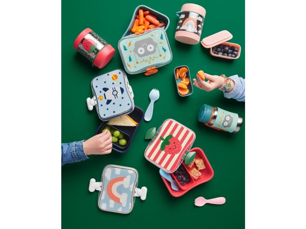 Díky veselým designům, pomocí kterých vyniknou malé osobnosti, si děti tuto sadu pro velké děti zamilují. Je ideální na nošení jídla do školky, školy nebo na piknik v parku či při cestování. Skvělá 4dílná souprava na podporu nezávislého jedení, obsahuje menší nádobu na občerstvení a víko, které se úhledně vejde do krabičky na oběd. Roztomilé klipy umožňují, aby se krabička snadno otevřela, ale zároveň byla nepropustná. Nakombinujte si produkty ve stejném designu z celé kolekce Spark Style.