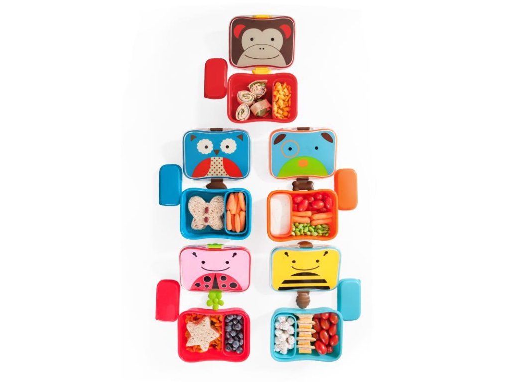 Krásná krabička na svačinu ve stylu Skip Hop, z kolekce Zoo, se skládá ze 2 částí: krabičky na svačinu s nepropustným víčkem a menší krabičky na piškoty.
