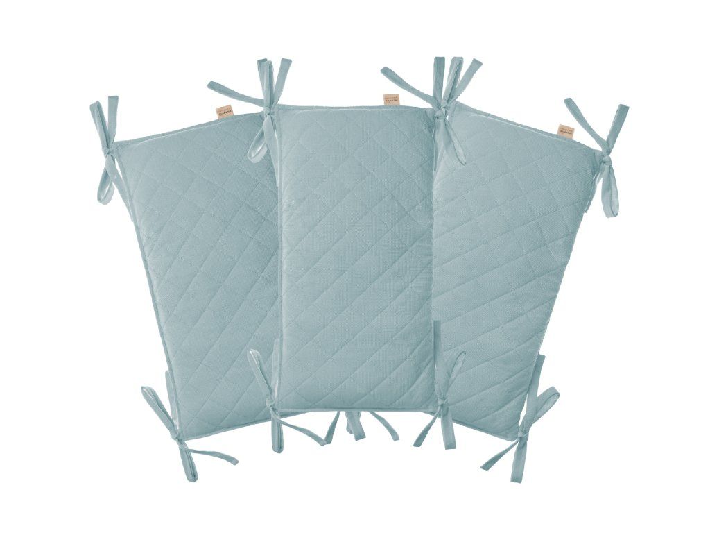 Díky tkaničkám umístěným ve všech rozích mantinelů můžete mantinel bezpečně zavázat k příčkám postýlky a být si jistí, že bude držet na svém místě a nebude padat či sklouzávat.