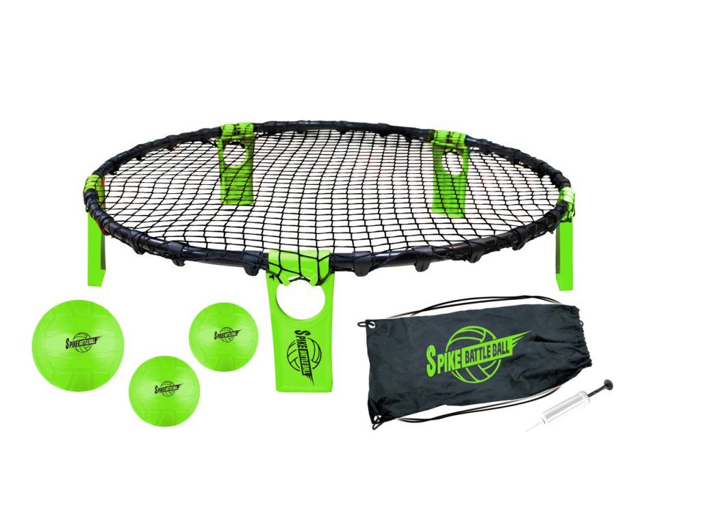 Venkovní dynamická sportovní hra Spikeball je skvělá hra pro 2-6 hráčů s jednoduchými pravidly. Cílem je maximálně třetím úderem odrazit míček od trampolínky. Hra začíná podáním, které by nemělo od trampolínky vyskočit výše než natažená ruka spoluhráče. Hrát však můžete jakoukoli částí těla. Míček se od trampolínky musí odrazit mimo ni, pokud by dopadl na ni, je to chyba hráče, který míček tímto způsobem zahrál. Vítězí dvojice, která jako první získá 21 bodů. Se setem Spikeball si užijete skutečně skvělou zábavu. Sada obsahuje: 5 × nožička | Průměr sítě: 90 cm