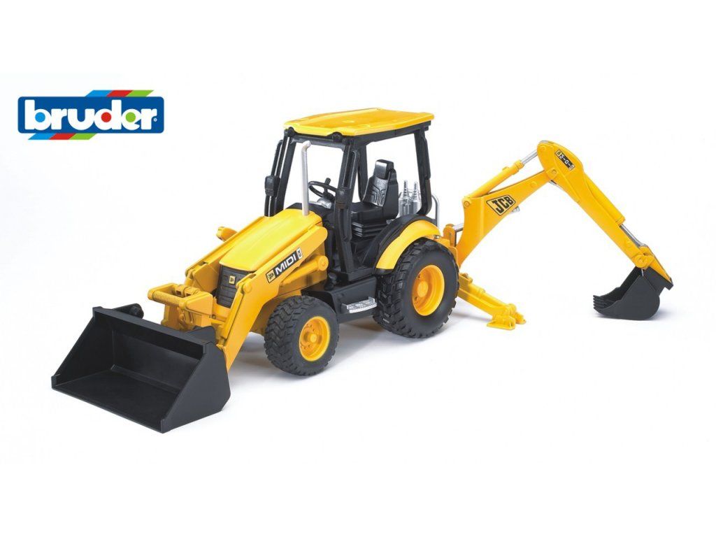 Stavební stroje - JCB MIDI CX nakladač 1:16. Tento model se vyznačuje především svou multifunkčností a všestranností. Spojuje téměř tři stroje v jeden: traktor, minibagr a čelní nakladač. Mezi jeho hlavní funkce a vybavení patří zejména přední lžíce a bagrovací rameno. Pro dokonalou stabilitu slouží opěrné nohy, které lze odejmout. Zadní rameno můžeme snadno odejmout a přidělat traktorový závěs. Sedadlo pro řidiče je otočné. Vozidlu nechybí ani profilové pneumatiky, které jsou vhodné i pro náročnější terén. Celkově je vyrobeno z vysoce kvalitního plastu, který je odolný proti nárazu. Je vhodný ke hře doma i venku. Rozměry: 520 x 180 x 160 mm