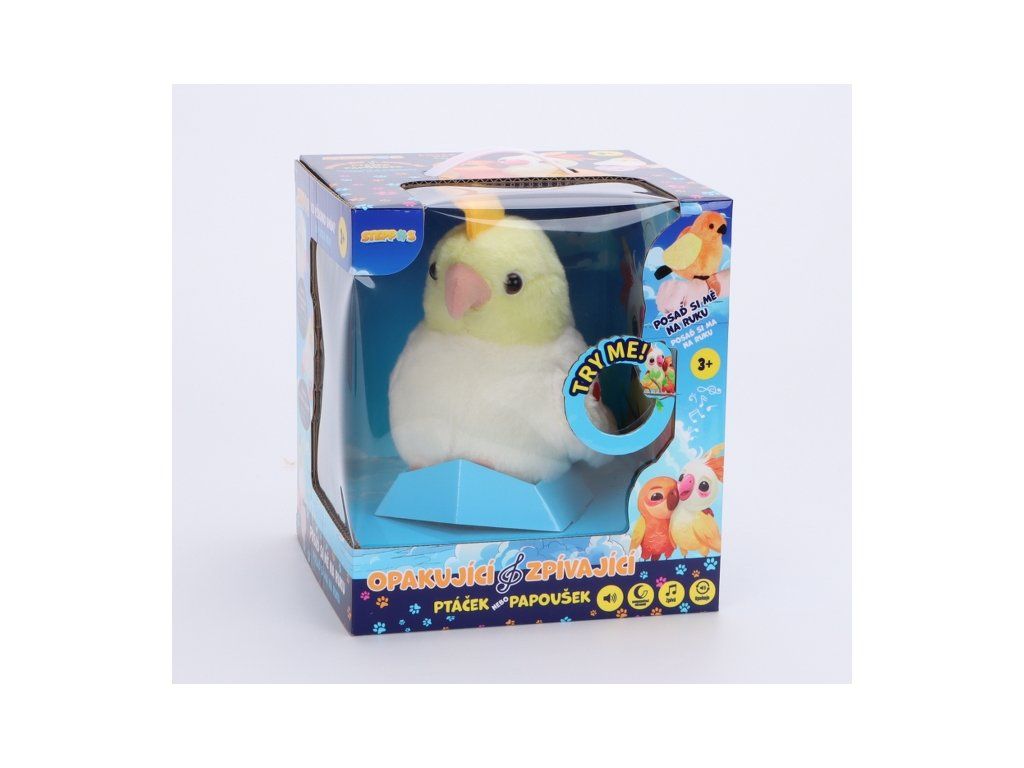 Vzhled ptáka je realistický, dvě tlačítka, jedním tlačítkem papoušek zpívá a druhým bočním tlačítkem s funkcí učení nahrávání (opakované vyprávění); Součástí je náramek, díky kterému bude dítěti sedět na ruce.