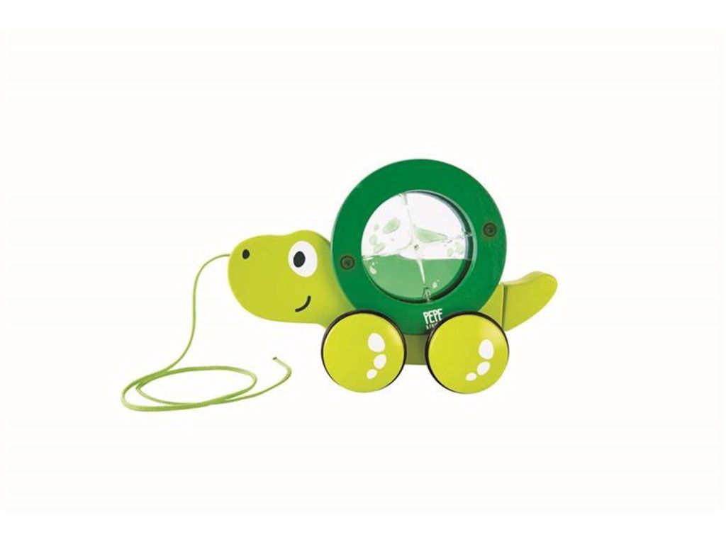 Želva jménem Tito se pohybuje spolu se svým krunýřem, který je naplněn tekutinou a vytváří tak pěkné efekty. Pomocí této hračky se děti naučí chodit a udržovat rovnováhu. Směr proudění vody můžete ovlivňovat pohybem želvy dopředu nebo dozadu. Vyrobeno z kvalitního a odolného dřevěného materiálu. Moderní design. Rozměr: 26 x 12 x 18 cm. Věk: 10m+.
