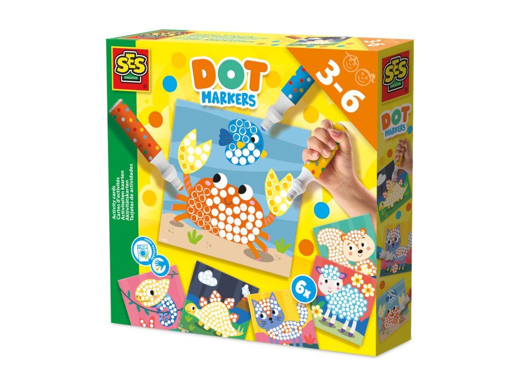 Objevte sadu tečkovacích fixů a kartiček s aktivitami – ideální pro kreativní a zábavnou výtvarnou činnost. Souprava obsahuje tři XXL tečkovací fixy ve žluté, oranžové a modré barvě. Součástí je 6 zábavných kartiček s předlohou na vybarvování teček a nekonečné tvůrčí vyjádření. Díky omyvatelným barvám je malování pro děti snadné a bez starostí. Barvy lze snadno vyprat. Souprava zlepšuje jemnou motoriku a seznamuje s rozpoznáváním vzorů prostřednictvím zábavného výtvarného umění. Rozměry balení: 20 x 20 x 4 cm. Věk: 3+