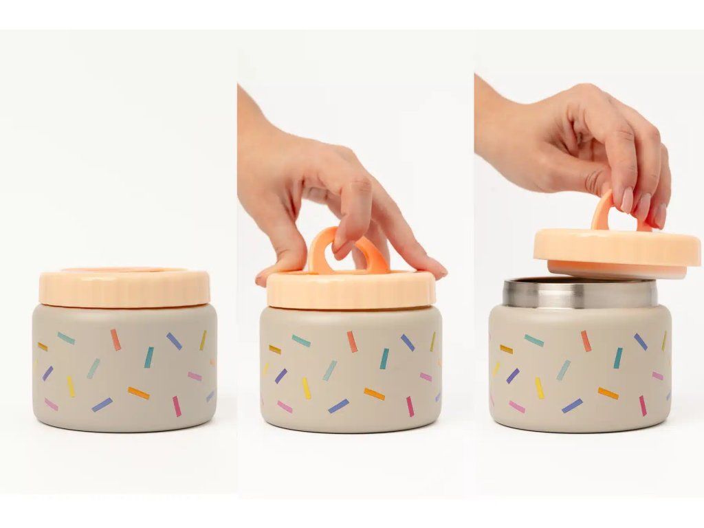 Nová dětská termo dóza na jídlo – ideální řešení pro udržení jídla a svačinek vašeho děťátka při ideální teplotě na cestách. Díky dvojité izolaci stěny udrží jídlo teplé až 6 hodin a svačinky studené až 12 hodin.