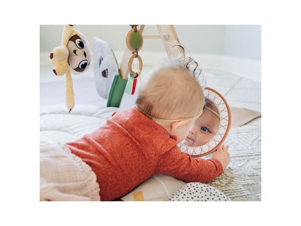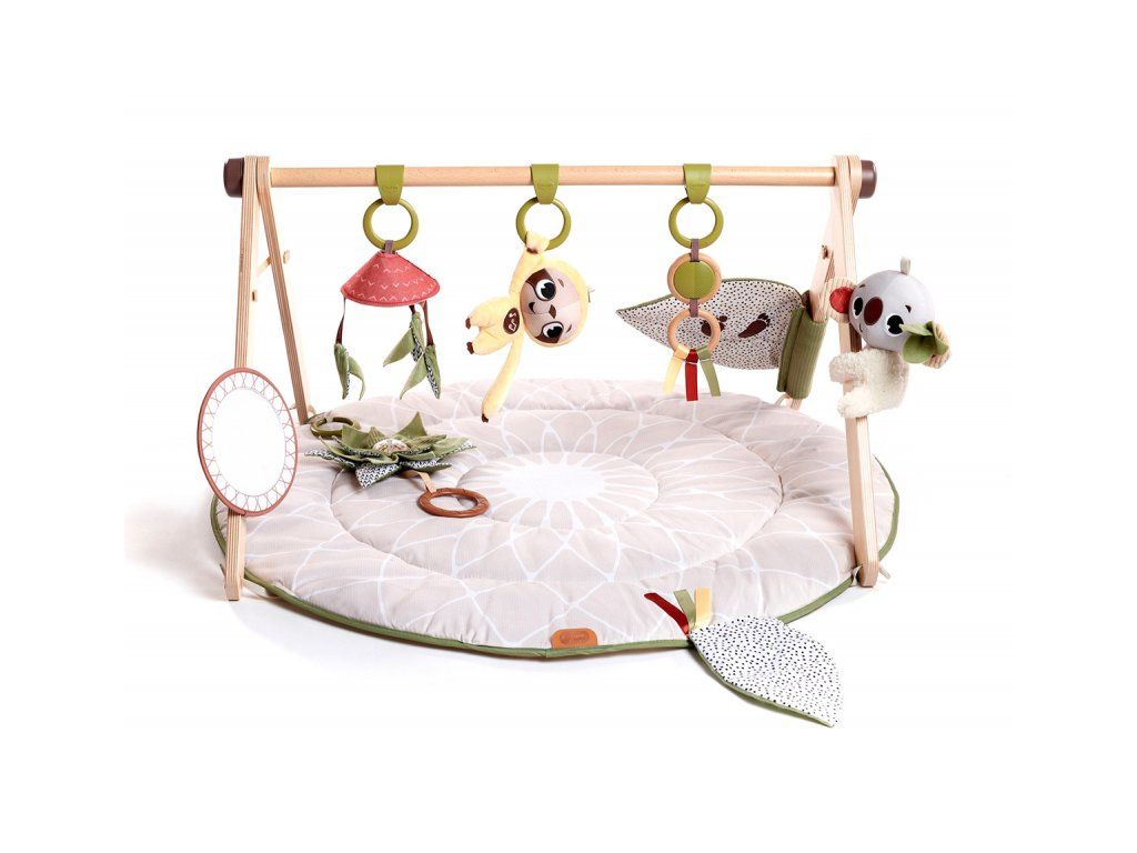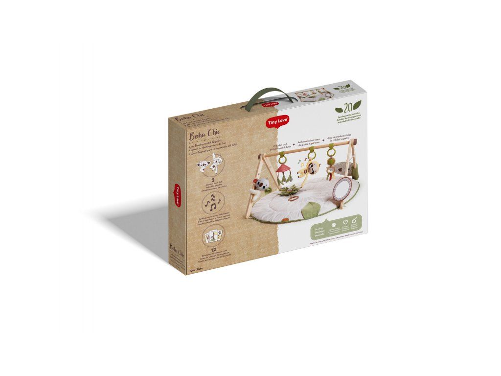 Hrací deka s hrazdou Tiny Love Boho Chic v luxusním provedení s dřevěnou hrazdou nabízí různé aktivity pro zabavení a stimulaci smyslů dítěte od narození.