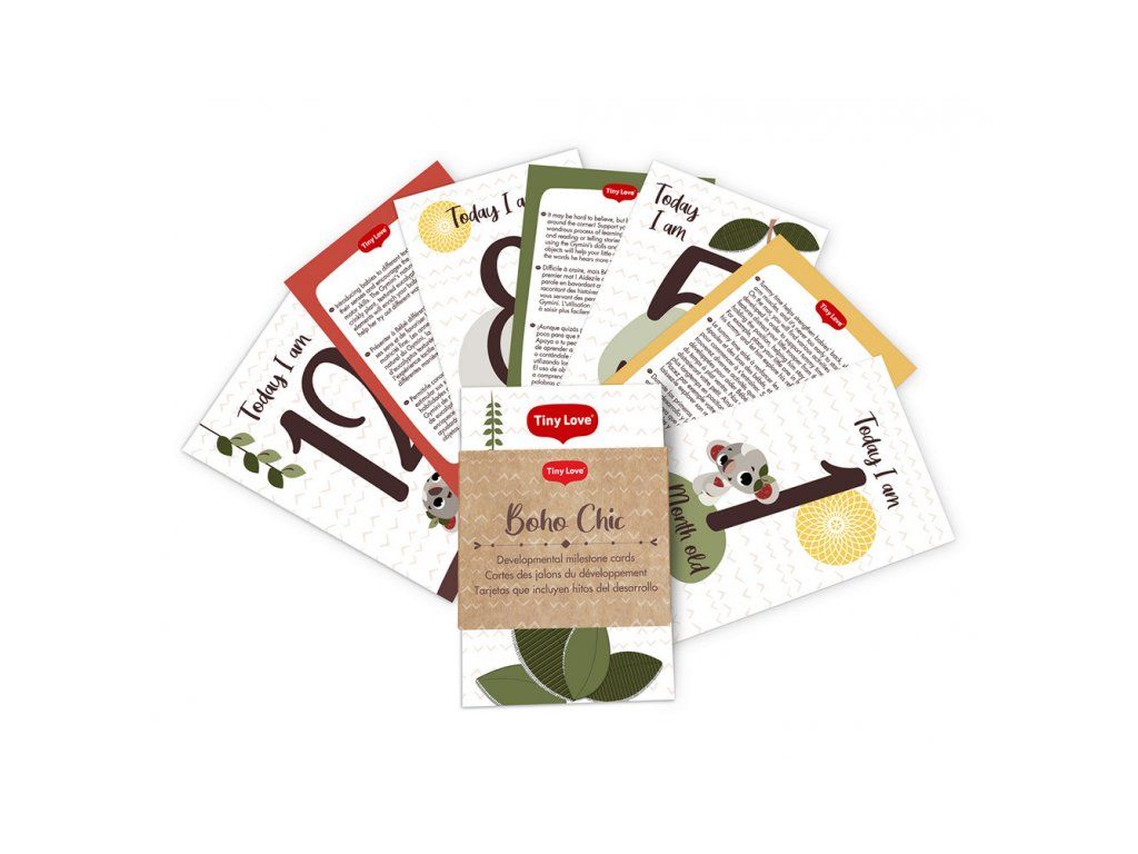 Balení obsahuje 12 ilustrovaných karet s čísly 1-12, se kterými můžete každý měsíc vyfotit své miminko a dokumentovat tak jeho růst a vývoj během prvního roku života.