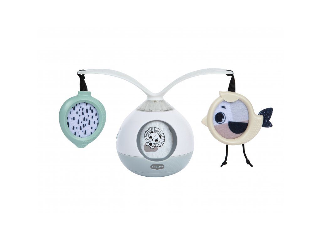 Na ramenech, otáčejících se o 360 °, upoutá pozornost dítěte zavěšené zrcátko i výrazné hologramové obrázky. Obrázky zvířátek se pohybují i v okénku hudebního boxu. Hračka umožňuje nastavit automatické přehrávání až 30 minut melodií spolu se světélky. Další variantou je pouštění hudby a světélek dotykem, dítě se tak učí příčině a následku.